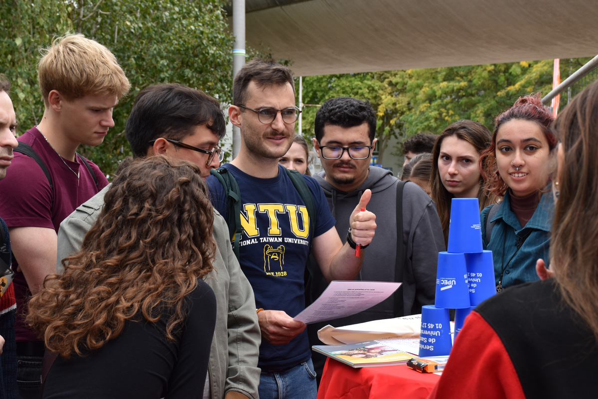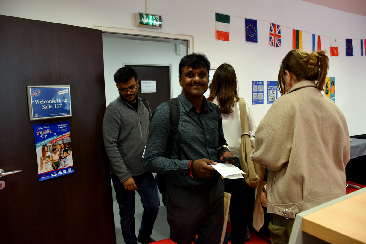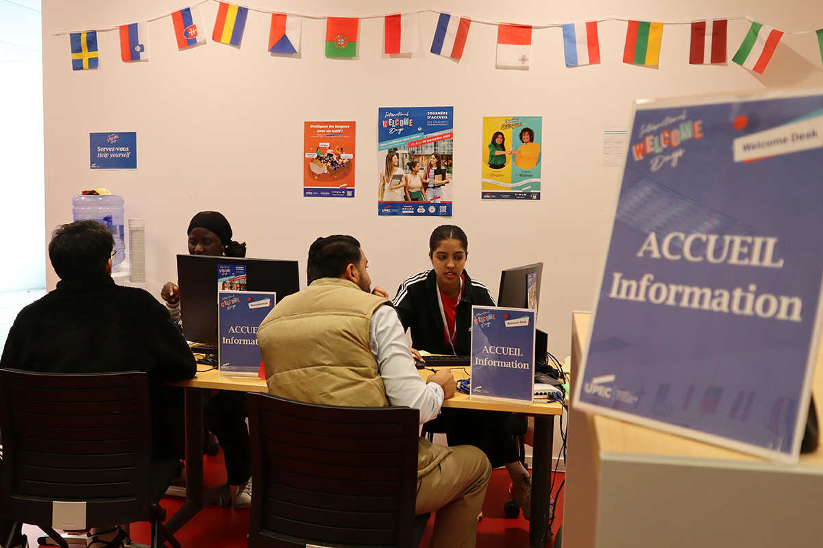 A Welcome Desk during the first three weeks of the academic year, which provided international students with access to student advisors, university services, and representatives from the French National Health Insurance (CPAM) and the Val-de-Marne housing and family benefits office (Caf), making it easier to complete all administrative procedures related to settling in France